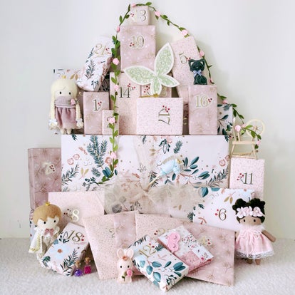 Luxury gift box with 24 beautifully wrapped presents in the theme of Sleeping Beauty! Each present contains an item from the fairy tale and when all the presents are unwrapped, the fairy tale can be played with all the dolls. Also, the 6 dolls are all different and this makes this advent calendar a great starter set for a dollhouse.
