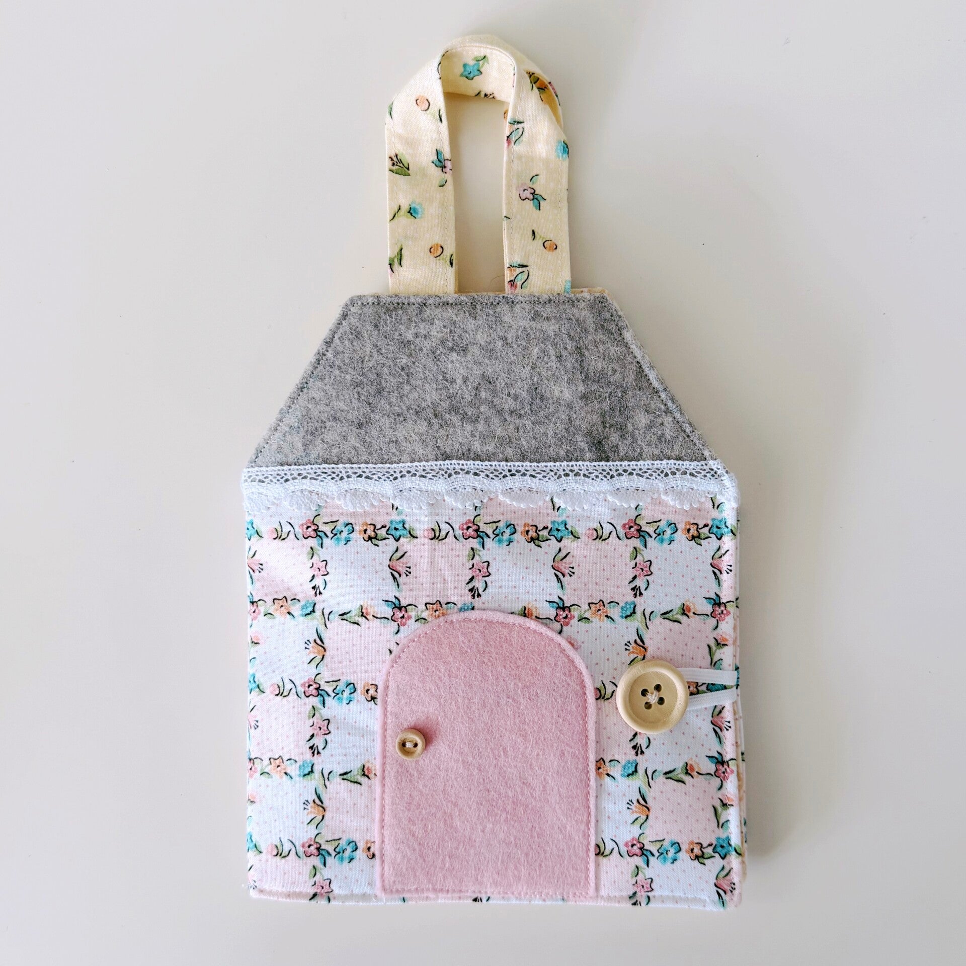 Dimensions of closed house excluding handles: 16 cm x 20 cm.